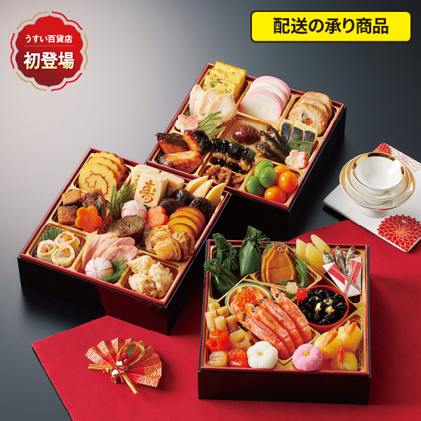 ※諸事情により献立の内容、お重の柄、材質が多少変わる場合がございます。