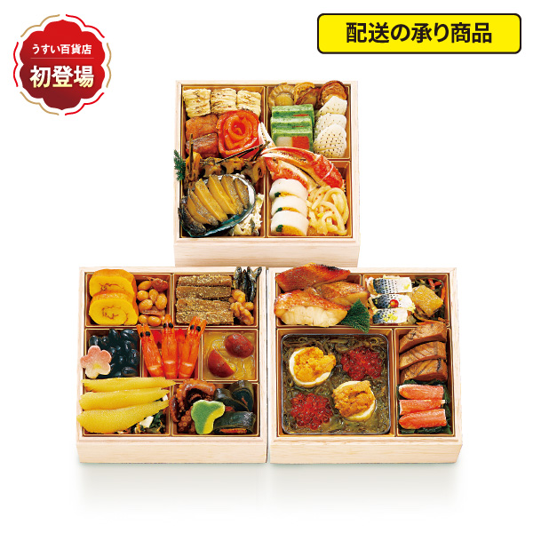 ※諸事情により献立の内容、お重の柄、材質が多少変わる場合がございます。
