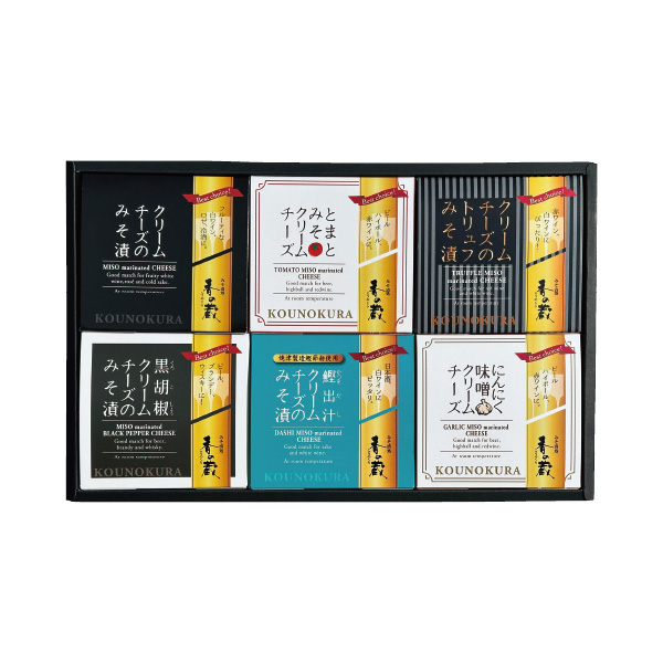 クリームチーズのみそ漬・鰹出汁クリームチーズのみそ漬・黒胡椒クリームチーズのみそ漬・クリームチーズのトリュフみそ漬・とまとみそクリームチーズ・にんにく味噌クリームチーズ 各35g 賞味期限120日