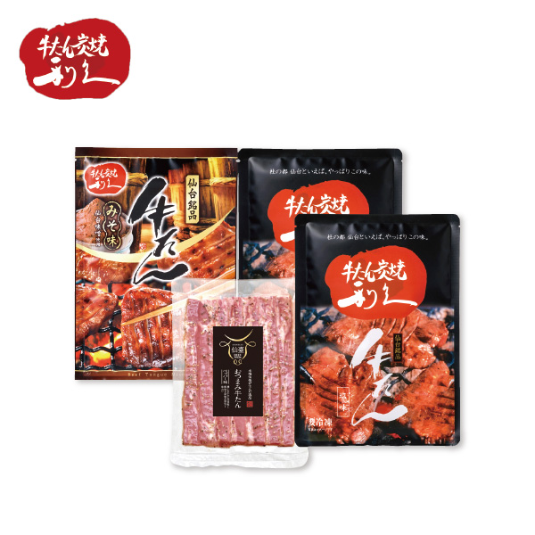牛たん(塩味)100g×2、牛たん(味噌味)110g、おつまみ牛たんペッパー50g