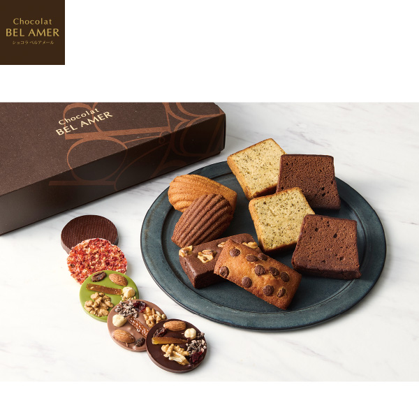フィナンシェチョコチップ、ブラウニーウォルナッツ、マドレーヌ(ショコラ・ショコラブラン)、ケーク(ショコラ・アールグレイ×各2)、パレショコラ×5 賞味期限40日