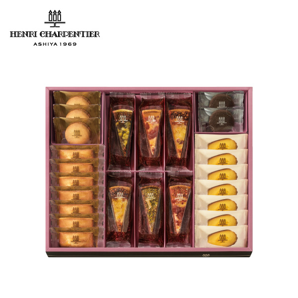 フィナンシェ×7、マドレーヌ×7、タルト・フリュイ×6、ラング・ド・シャ(プレーン×3・チョコレート×2) 賞味期限60日