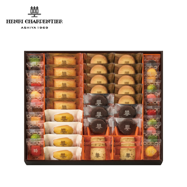 フィナンシェ×5、マドレーヌ×4、プティ・ガトー・アソルティ×22、ラング・ド・シャ(プレーン×9・チョコレート×5)、アーモンドクッキー×6 賞味期限60日