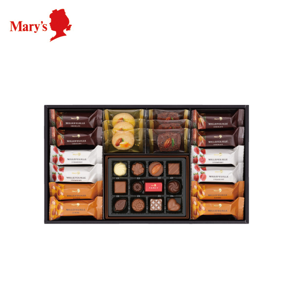 ファンシーチョコレート×12、ミルフィーユ(アーモンド・ストロベリー・チョコレート×各4)、カカオサブレアソート×6 賞味期限120日