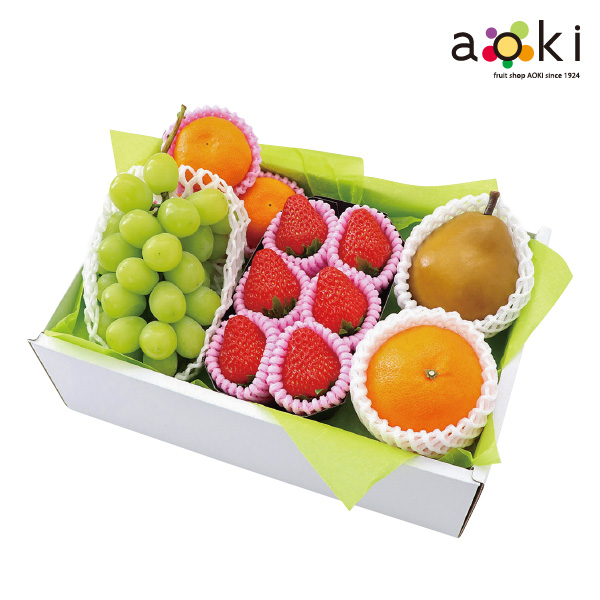 シャインマスカット350g、紅まどんな・西洋梨各200g、みかん60g×3、いちご15g×6