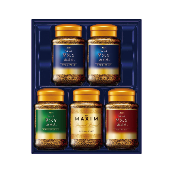「ちょっと贅沢な珈琲店」インスタントコーヒー(ブラジルブレンド×2・モカブレンド・キリマンジャロブレンド)「マキシム」インスタントコーヒースペシャルブレンド 各65g