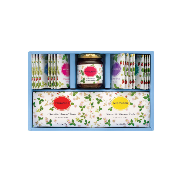(2)ブレックファスト・ストロベリー・アールグレイシトラス・アフタヌーン 各2g×6、ストロベリージャム140g×2、アップルティークッキー・レモンティークッキー 各80g