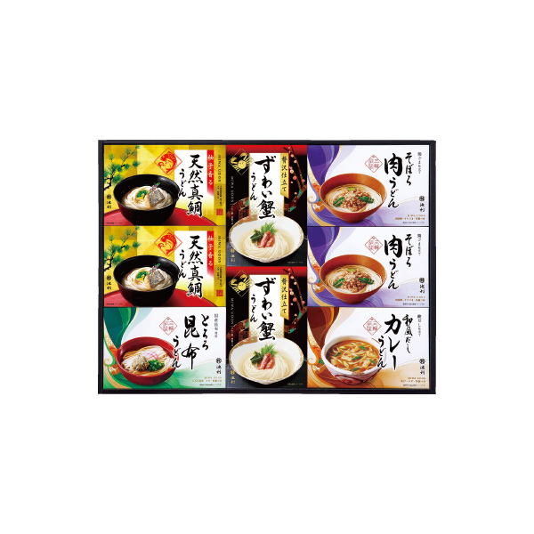 ずわい蟹うどん・天然真鯛うどん・そぼろ肉うどん×各2、和風だしカレーうどん・とろろ昆布うどん