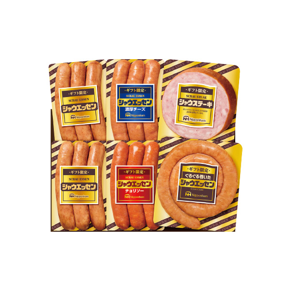 ギフト限定)シャウエッセン×2・シャウエッセン濃厚チーズ・シャウエッセンチョリソー各100g、ぐるぐる巻いたシャウエッセン・シャウステーキ各122g